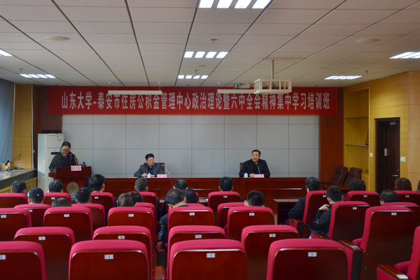 3月21日,经济学院举办的山东大学——泰安市住房公积金管理中心政治理论暨六中全会精神集中学习第二期培训班开班典礼在中心校区举行。泰安市住房公积金管理中心党组成员、副主任杨皓,山东大学经济学院副院长石绍宾出席开班典礼并致辞。