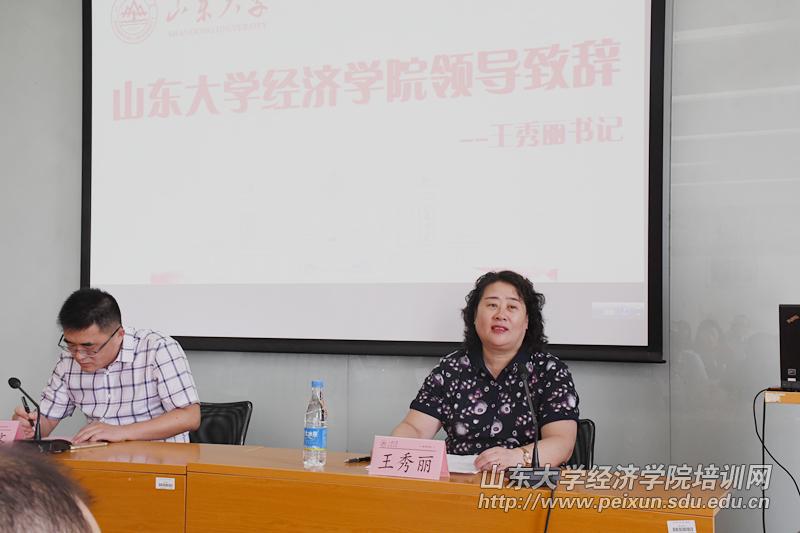 本次培训班由山东大学经济学院承办,学院党委书记王秀丽同志作为开班嘉宾出席了典礼。她在开班典礼上发表了热情洋溢的欢迎词,向54名重庆市教育系统的年轻干部介绍了山东大学的历史沿革、办学特色和学术实力,并重点介绍了威海校区的情况,预祝学员们在接下来一周的学习时间里学有所获。
